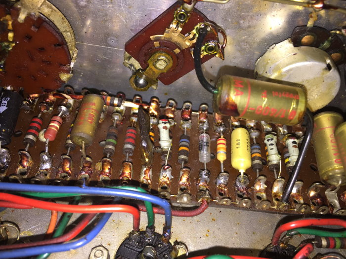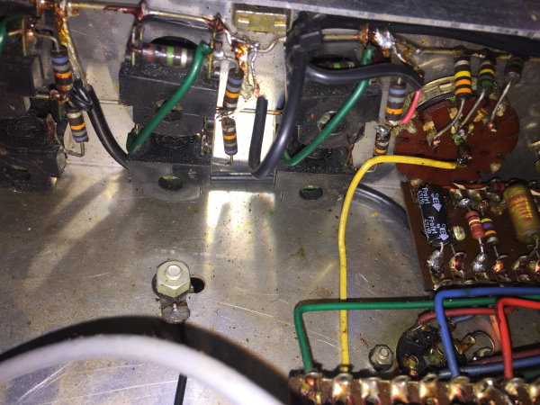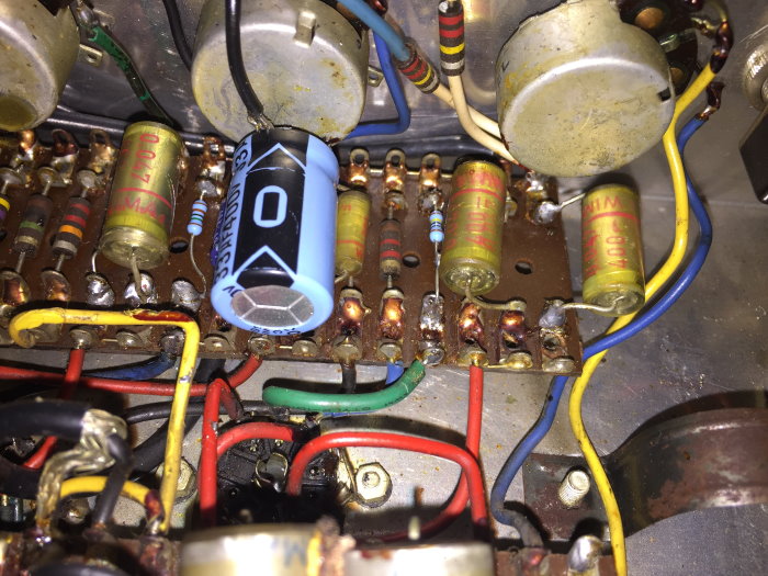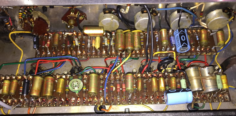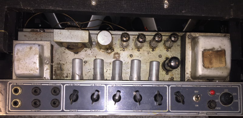 The AC30 continued to evolve with the introduction of the AC30/6 in 1960, which added a Brilliant channel to the standard complement of Normal and Vib-Trem channels, increasing the number of inputs to six. This change also involved swapping the original EF86 pentode tube to an ECC83 (12AX7) twin triode. It has been said that the AC30/6 lacked some of the clarity of the original model, and that’s ostensibly why Vox responded with its Top Boost “brilliance” modification in 1961. This comprised a plate of bent aluminum gripping an extra 12AX7 tube along with Bass and Treble controls, which was mounted into a square cutout on the back of the amp, and wired into the main circuit. Initially, the Top Boost mod could be ordered separately, or be factory installed on the AC30/6. In 1963, the extra circuitry was incorporated into the chassis, and the Bass and Treble knobs were added to the control panel (the add-on unit was still available, though).Despite its comparative simplicity most customers didn't have the technical knowledge to fit the new circuit and consequently the Top Boost, or 'Brilliance Unit' as it was officially named, was fitted to the AC30 as standard from 1964