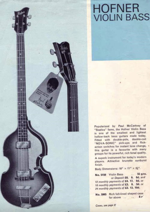 Paul McCartney in 1964 with his second Hofner bass.
