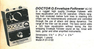ELECTRO HARMONIX DOCTOR Q Envelopoe Follower Bass or Guitar effect 1977