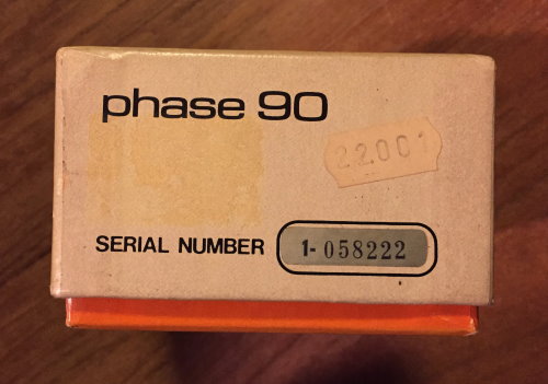 MXR PHASE 90 Block Logo 1980 with Tag and Box Mint Cond. Here is an amazing original MXR Phase 90 in the Block Logo style. Incredible vintage tone. Lush, warm, sweeping phaser effects. Just one knob and an on-off switch. Solidly built, in very nice shape. Code EF343