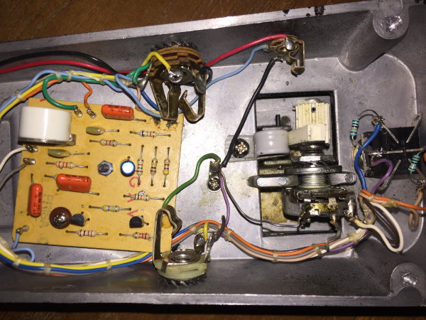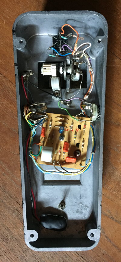 Around 1973 Jen created a series of four brightly colored effect pedals in die cast enclosures, each with slider controls rather than knobs, and each using reworked circuits based on existing designs from other companies. One of these was the Jumbo Fuzz, which was also rebranded as the Dallas Arbiter Jumbo Fuzz in Europe, and the Sam Ash Jumbo Fuzz/Sam Ash Fuzzola II in the America. The enclosure used was simiar to Jen's black powder coated ToneBender case, but with recessed areas on the top for the color label plates to be applied. The same enclosure was also used by Jen for some Vox ToneBender production and the Unicord Fuzz. A key identifying and dating feature to the enclosure was the white rubber skirt edging used around the bottom cover, which was identical to the edging used on 1973 production of the the Dallas Arbiter Wah Baby, the Jen/Vox Cry Baby Wah, and the Jen/Vox Double Sound distortion wah pedal.