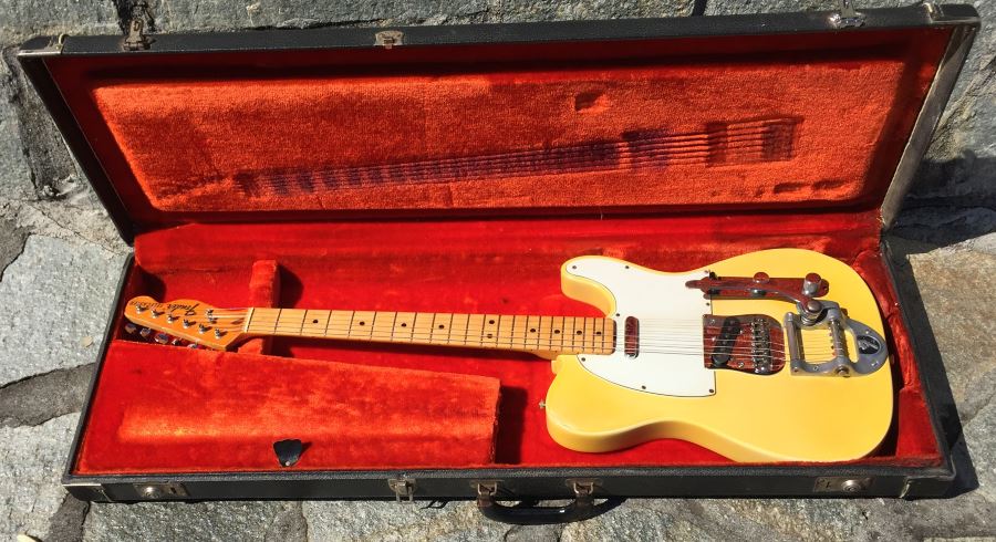 Amazing vintage 1972 Telecaster with original Bigsby. Ash body in See Thru Blond, everything original, maple neck great really nice player and straight and frets have no war. Has a beautiful, bright tone with plenty of bite from the bridge pickup and nice warm neck pickup.It is an instrument that provides a real pleasure and is also very comfortable to play. Comes with original case