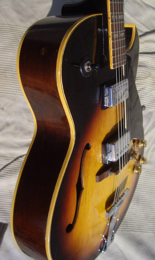 This is a great sounding, and great playing jazzbox that allows a player the warm tones from the bebop era, yet is also versatile enough to be used for blues, rock, swing, or rockabilly. The ES-175D is considered by many players to be the classic jazz guitar although it is sonically capable of much more than that and due to the two pickup configuration, it can easily cover rock and blues territory. Gibson’s twin humbucking pickups offer everything from smooth jazz tones to real blues/rock bite. This particularly clean condition guitar dates from 1965 and features a glorious faded sunburst finish that just looks stunning. The guitar has all original hardware, included the zigzag tailpiece.Acoustically, you can really hear the craftsmanship and quality of this instrument’s construction and it resonates well in all registers with a particularly detailed top end. Plugging the instrument into a flat response amplifier truly reveals the rich tonality that the ES-175 is capable of and alongside the articulate jazz tones you’d expect from the front pickup there is a surprising array of blues and rock tones possible from the bridge pickup. You can hear straightway why players like Steve Howe of Yes and other prog rockers have favoured an ES-175D. Even funk rhythms sound totally authentic on this guitar