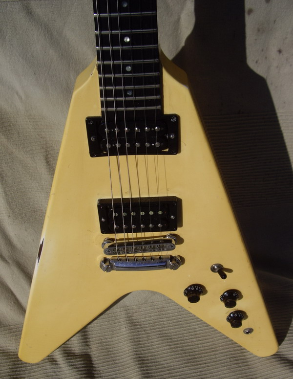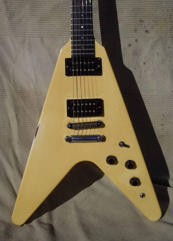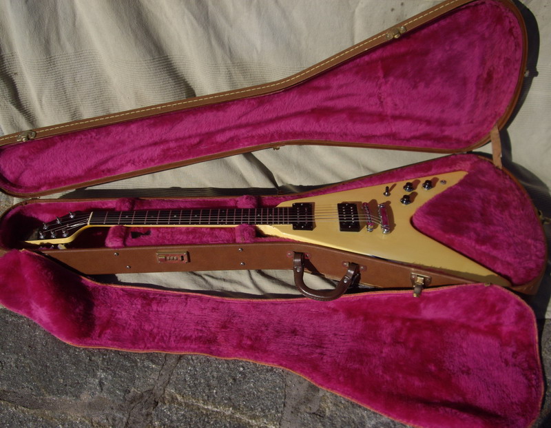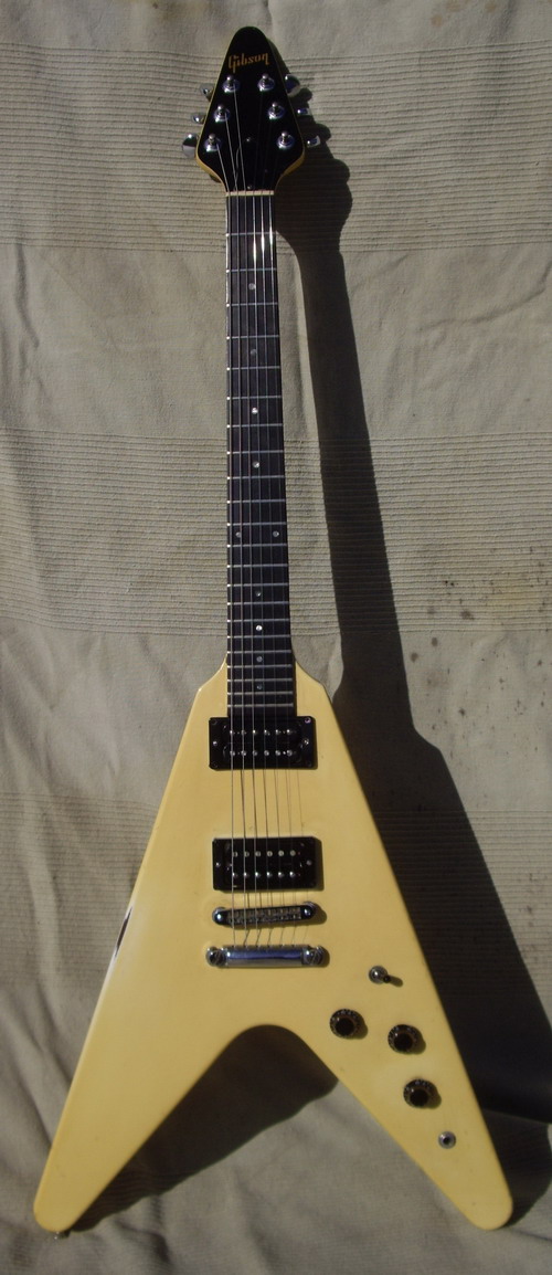 '85 FLYING V White (Creme) Gold Parts 2HB Patent Number, rare, Gibson Case EX code GI588