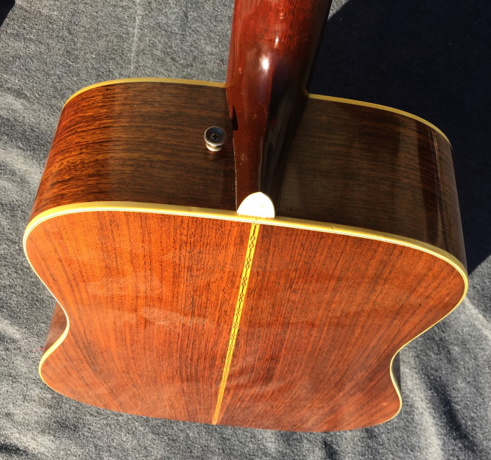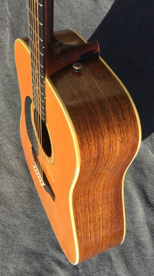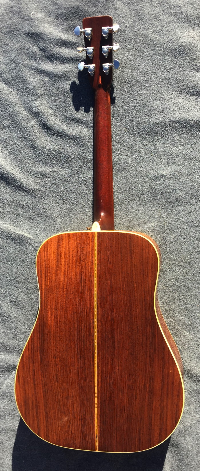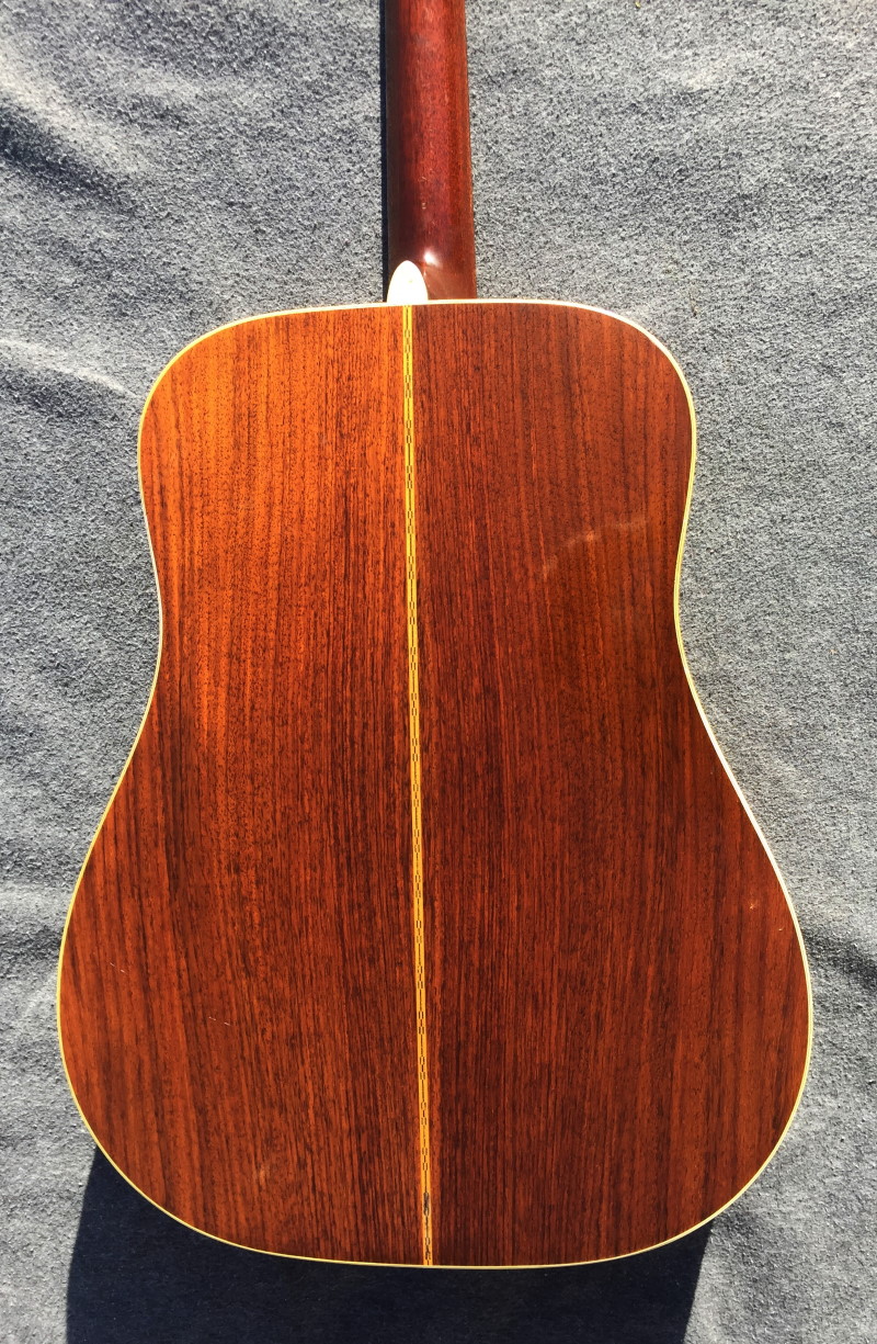 Vintage first 1970 Martin D-28L with original blue Martin hard shell Solid Sitka spruce top close grained restoring. Solid Indian back & sides. Rosewood bridge plate. African Ebony fingerboard & bridge. Prfect neck with low action and good frets.The guitar is very easy to play & bend strings for blues playing even with medium gauge strings. Loud volume with warm tone & unbelievable sustain.The original USA Grover tuners work great & have adjustable tension via screw on end of button. If you want to own a very fine example of 1970 D-28L with fantastic sound, playability and visual appeal this will make you happy.