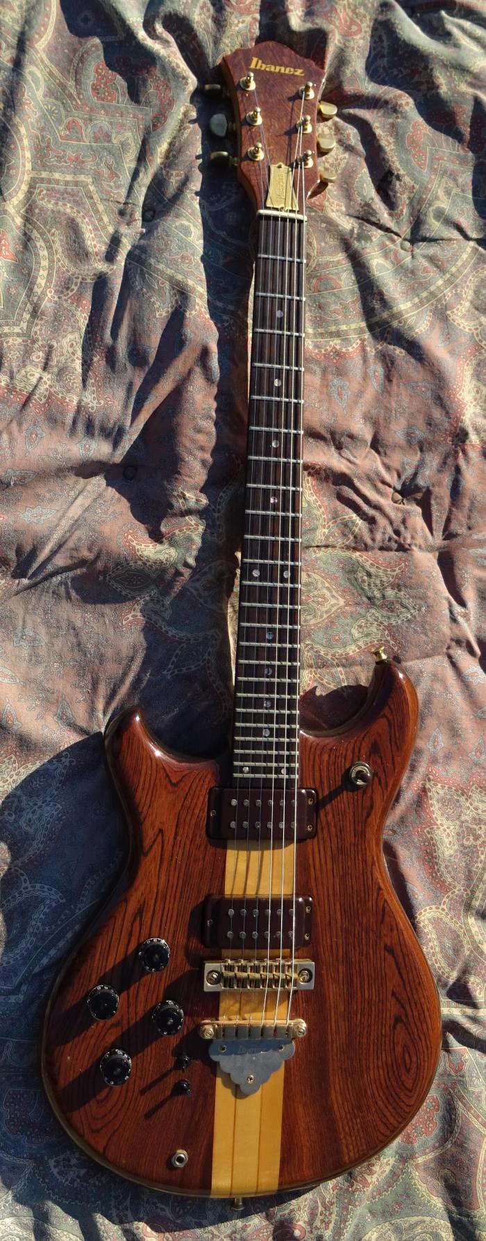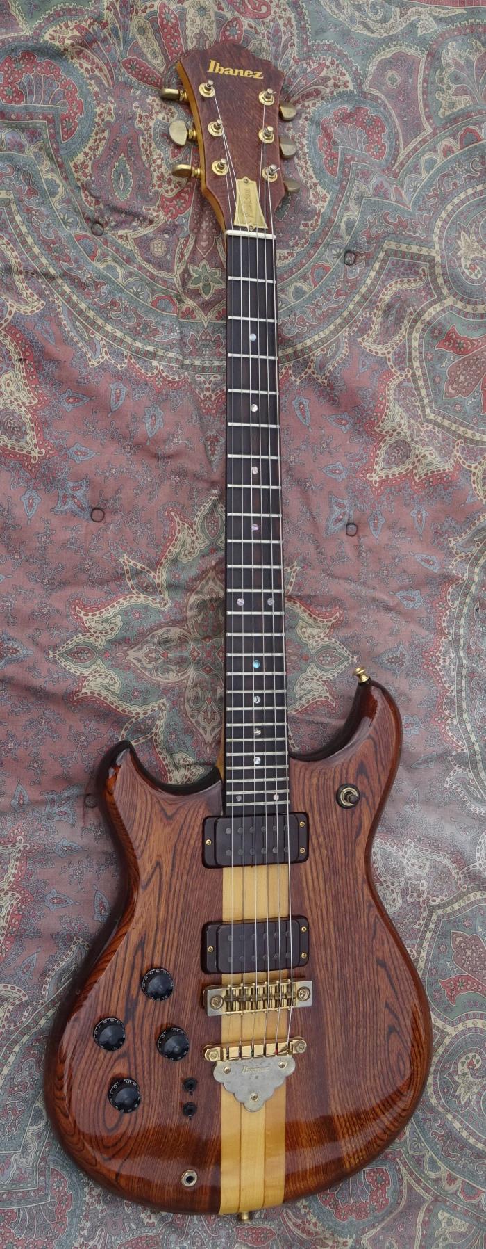 The Straight Thru neck affords the best rigidity and sustain possible Body: Ash and mahogany sandwich Neck; Laminated rock maple and walnut Fingerboard: Ebonized rosewood, abalone dot markers 24 Ibanez Velve touch frets Half & Half nut PIckups: Ibanez Super 88 Tri sound pickups Bridge Ibanez Gibraltar Locking bridge with sustain block 3 Position pickup selectro 2 tri sound selector Tunters: Ibanez Velve Tune II Tri sound switch: IT allows you to get the distinctive sounds of a Humbucking, single coil and reverse phased twin coil pickup all in one The 5 Way switch on the right side allow you to get 5 kind of tones from the Brightest to the darkest ibanez tone!