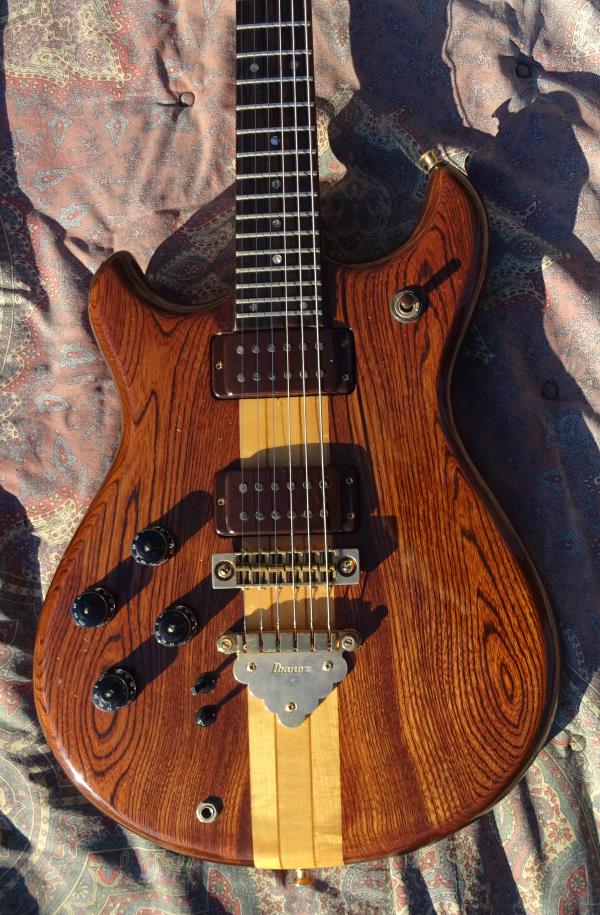 3-piece maple neck, Rosewood fretboard with 24 frets 2x Ibanez Super 88 humbucker PU's, 1x Volume, 1x Tone, 2x Trisound SW, 1x PU-select, 6-way Varitono sound switch.The Ibanez MC Musician series was one of several designs launched by Ibanez following the lawsuit era of the early '70s. There were a few different MC Musician models, but the models with neck-thru bodys and carved tops are the most valuable.