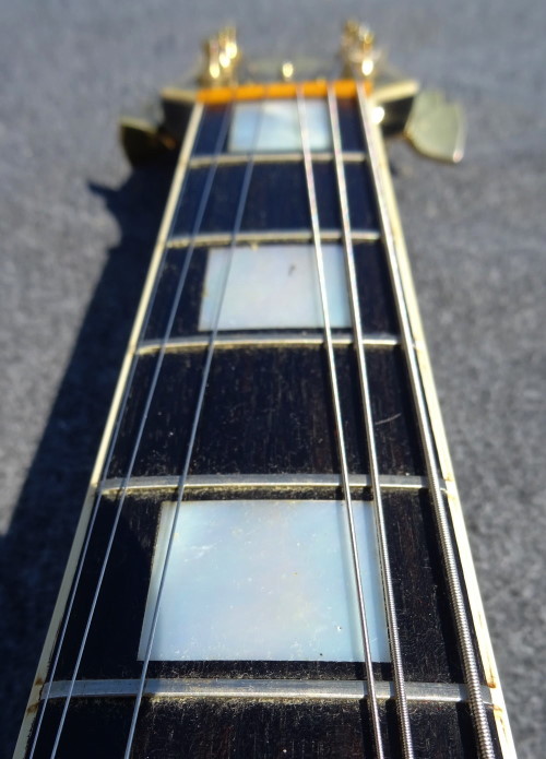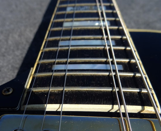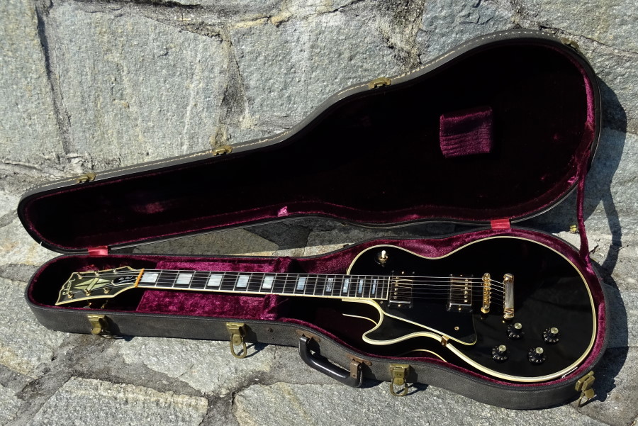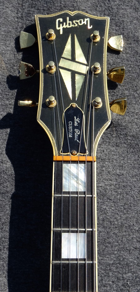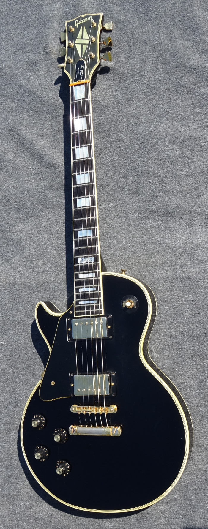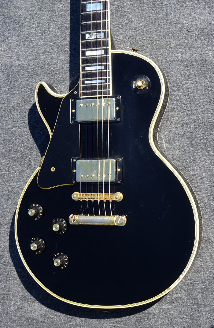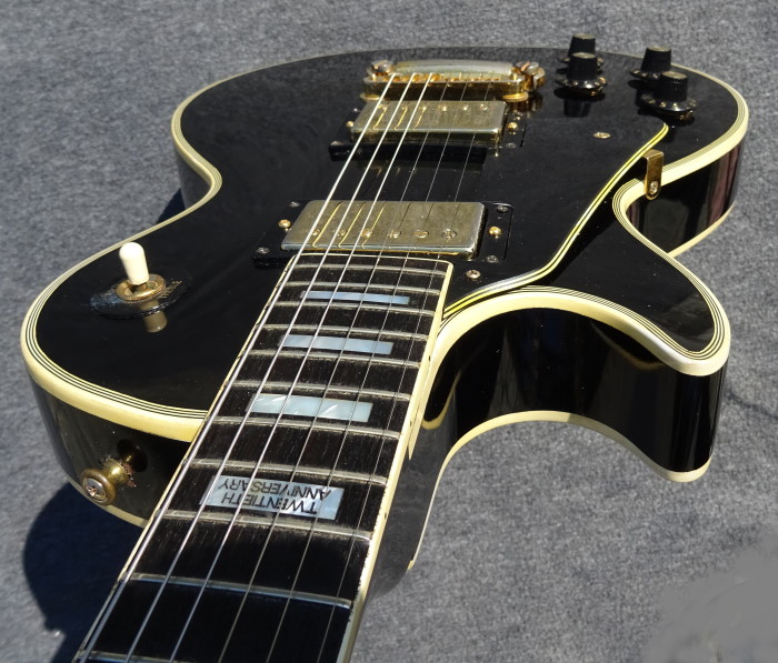In 1974 Gibson celebrated the 20th anniversary of the Les Paul Custom. At the 15th fret, an engraved 20th anniversary inlay commemorates these special guitars.All of the other specs are typical of Les Pauls of the period. Mahogany body with a maple top. Three piece mahogany neck with a bound ebony fingerboard and pearl block inlays. Pearl split diamond headstock inlay and multiple binding. Gold hardware. The pickups are the original Patent Number Black Label sticker. The neck shape is a typical medium slim 70s style. Original Frets in good conditions ! The action is low from the nut to the bridge. The low fretless wonder frets make for incredibly easy chording and playability.These are probably one of the most collectible Les Pauls of that era.