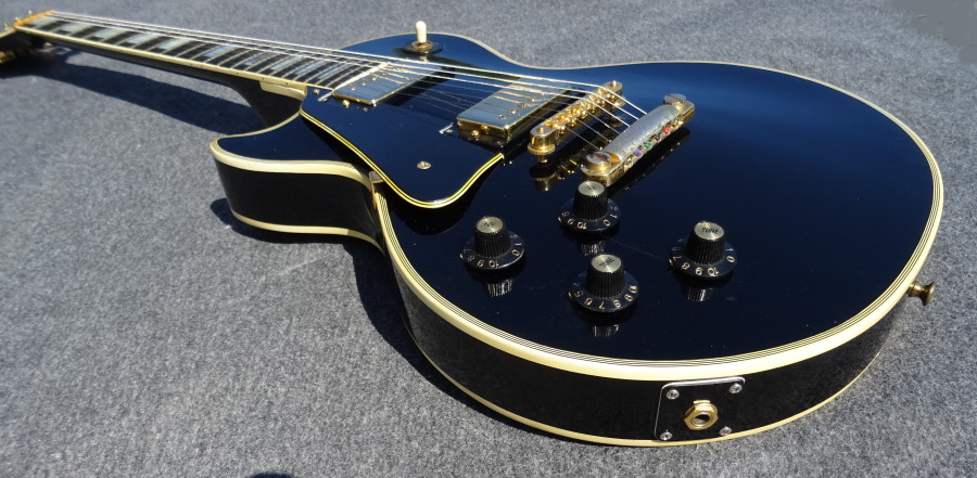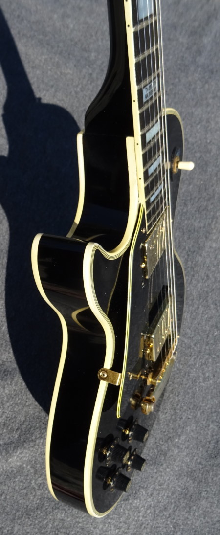 1974 GIBSON LES PAUL CUSTOM ANNIVERSARY LEFTY Black Finish, Ebony fingerboard, Gold Hardware, Mahogany neck, Amp knobs, and 1974 dated pots., Kalamazoo Made, OHC EX+ code LH42