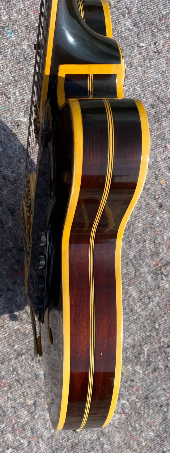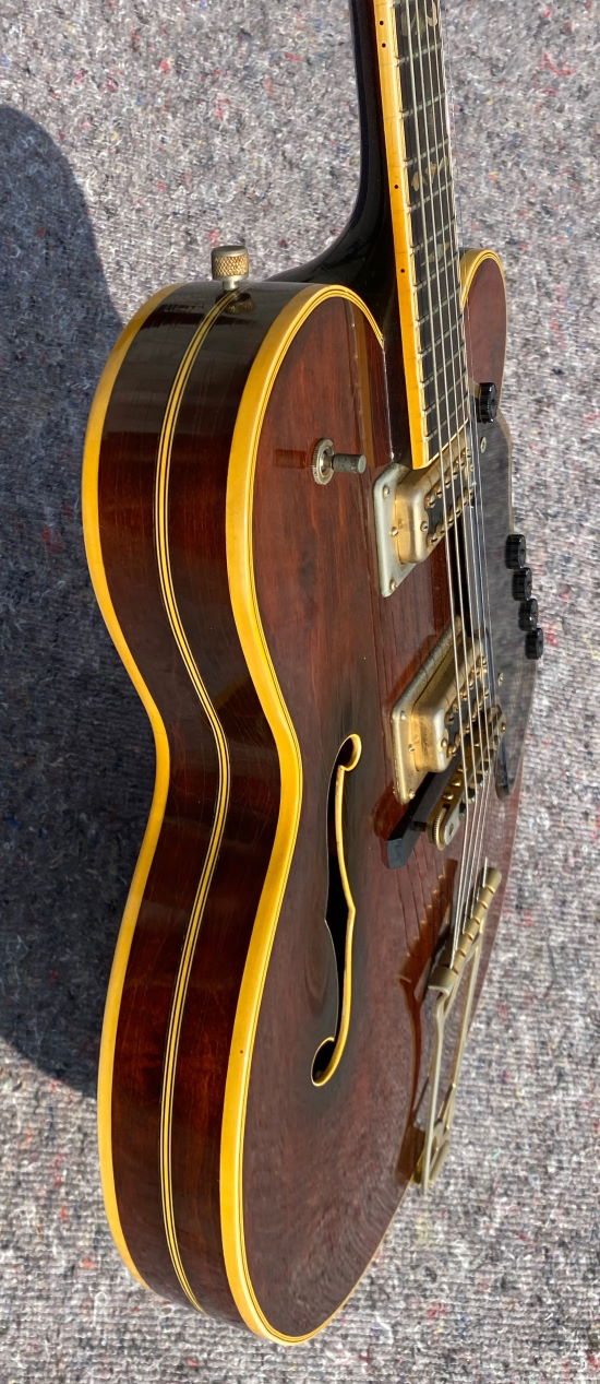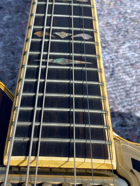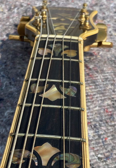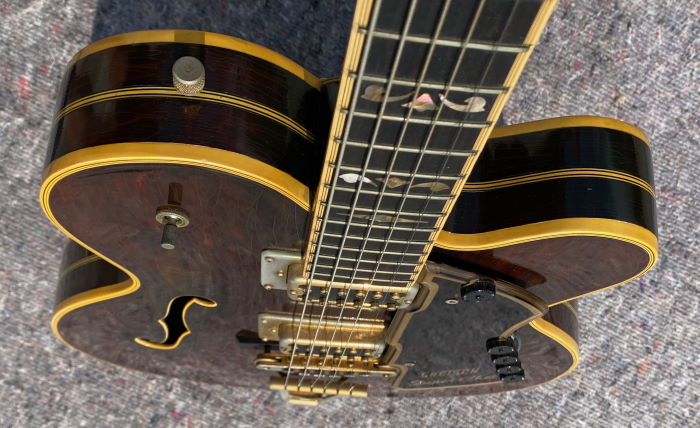 Super clean Super Chet! 2 Pickups, 5 knobs on pickguard, abalone-tailpiece inlay, fancy abalone inlay on fingerboard and pedhead, zero fret, gold-plated hardware, comes in not original case