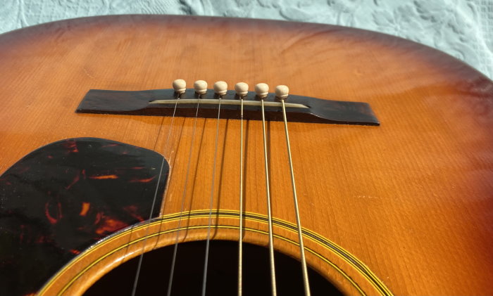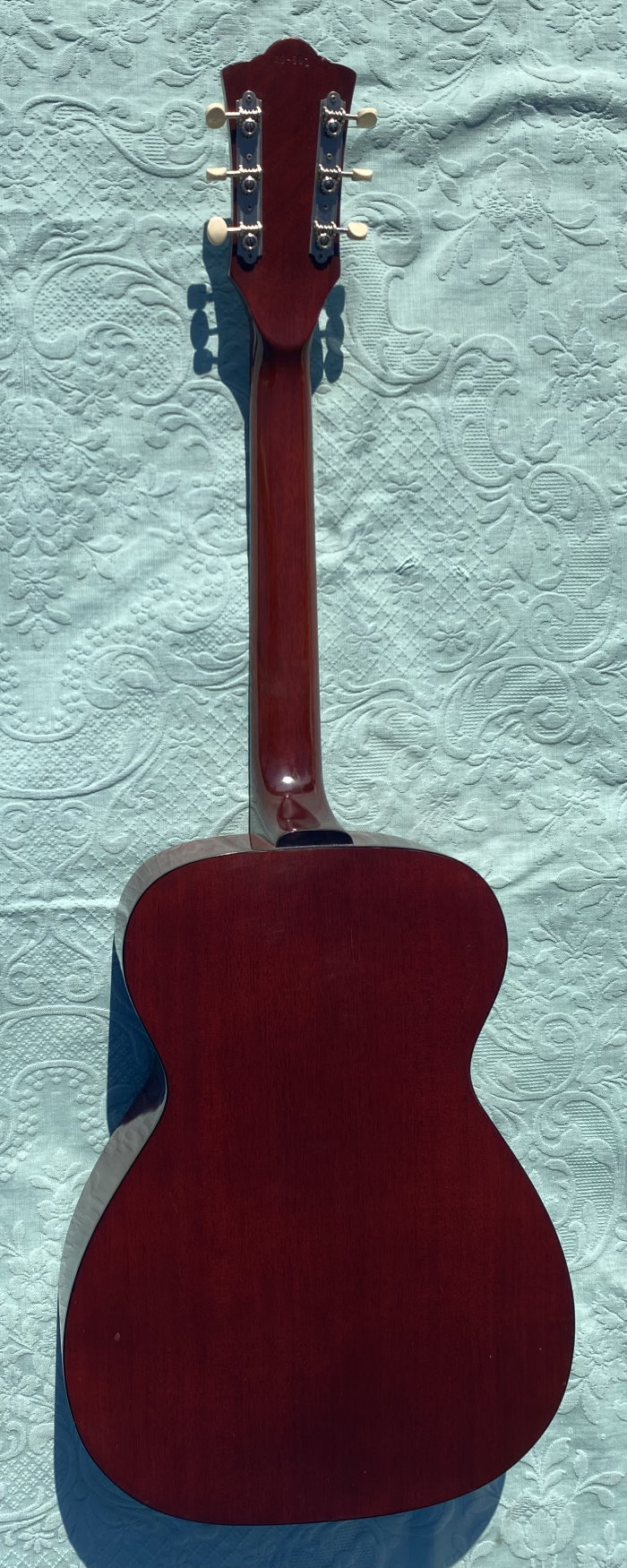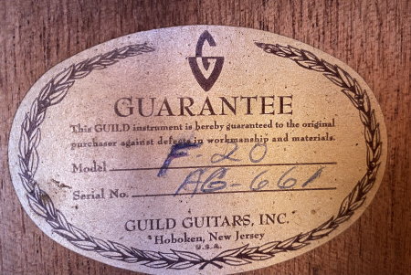 Very nice Original Vintage acoustic guitar Guild F-20 Troubadour, a popular small-bodied acoustic guitar from the 1960s Folk Era, rather than a specific modern model named "Troubadour" released in 1966. Straight neck with very good frets ready to play. Good strings action. Some minimal dings and dongs. Some paint wear on the low end of the guitar as seen in the photo. Lining in the stabilized varnish near the pickguard. The original F-20 was a beloved instrument known for its comfortable size and delicate, round tone, perfect for fingerstyle and light strumming. Offering the warm, articulate tone and craftsmanship that has made Guild a favorite among folk, blues, and fingerstyle players for decades. This guitar is so light and resonant - it sounds killer. It plays perfectly as well. Featuring a Suburst finish, comfortable small-body design, and classic mahogany back and sides with spruce top, the F-20-NT delivers a balanced voice perfect for both recording and performance.This guitar comes with New Original Guild hard shell case, The F-20 series has long been regarded as one of the most expressive small-bodied acoustics, comparable in charm to vintage Martin 0-18 models but with Guild’s signature character.1 5/8" Nut Width 24 5/8" Scale Length