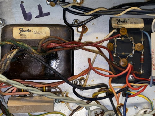 Sadly, we are seldom offered the opportunity to turn the volume above 3 on a Twin Reverb like the more versatile Pro Reverb 2×12″ The Fender Pro Reverb is actually a Vibrolux, but equipped with 2×12" speakers instead of 10" speakers. Amp is all original, works great and sounds amazing. Real clear clean tones with lots of headroom, and nice distortion tones when cranked. The Amp has been serviced and is in very good condition. Two matching 12" Oxford speakers. Two new power tube matched. Comes including orig. Fender footswitch for Reverb/Vibrato. Weight: 58 lbs. (26.3 Kg)