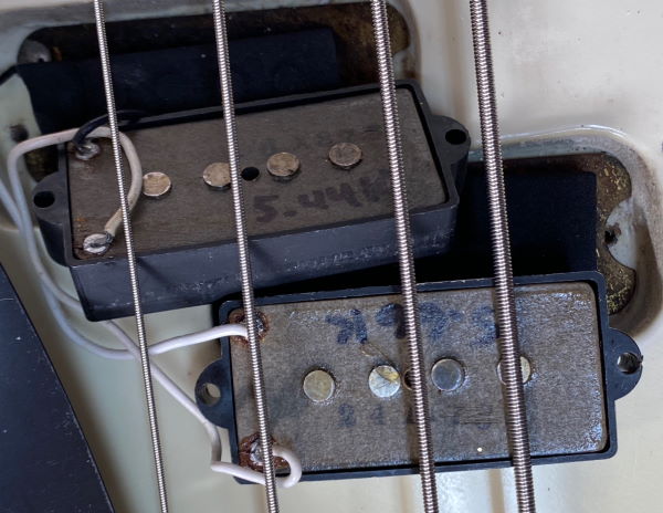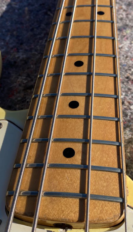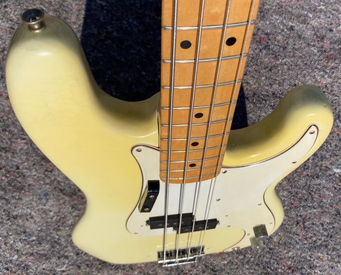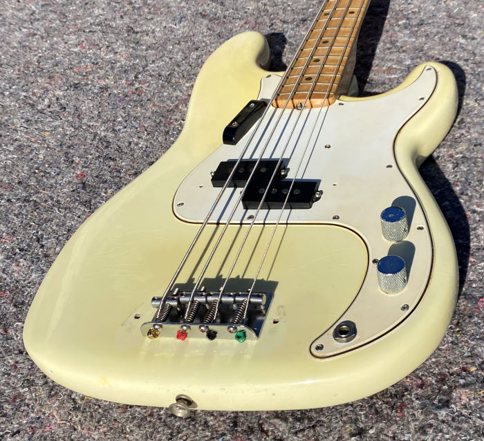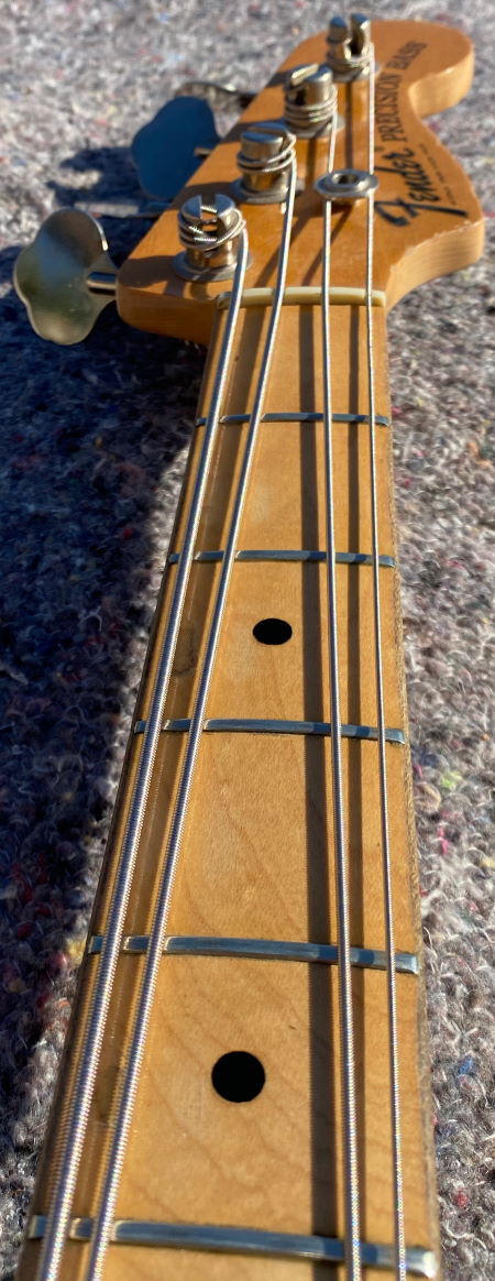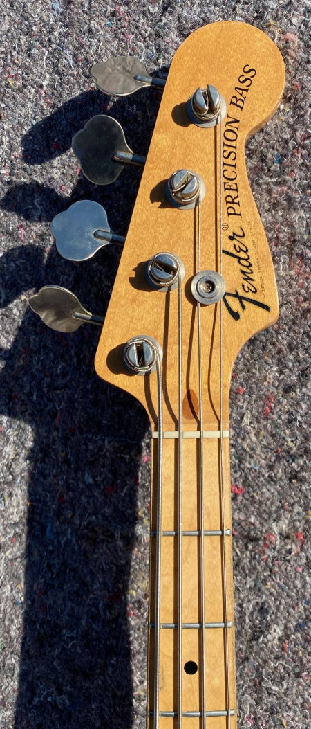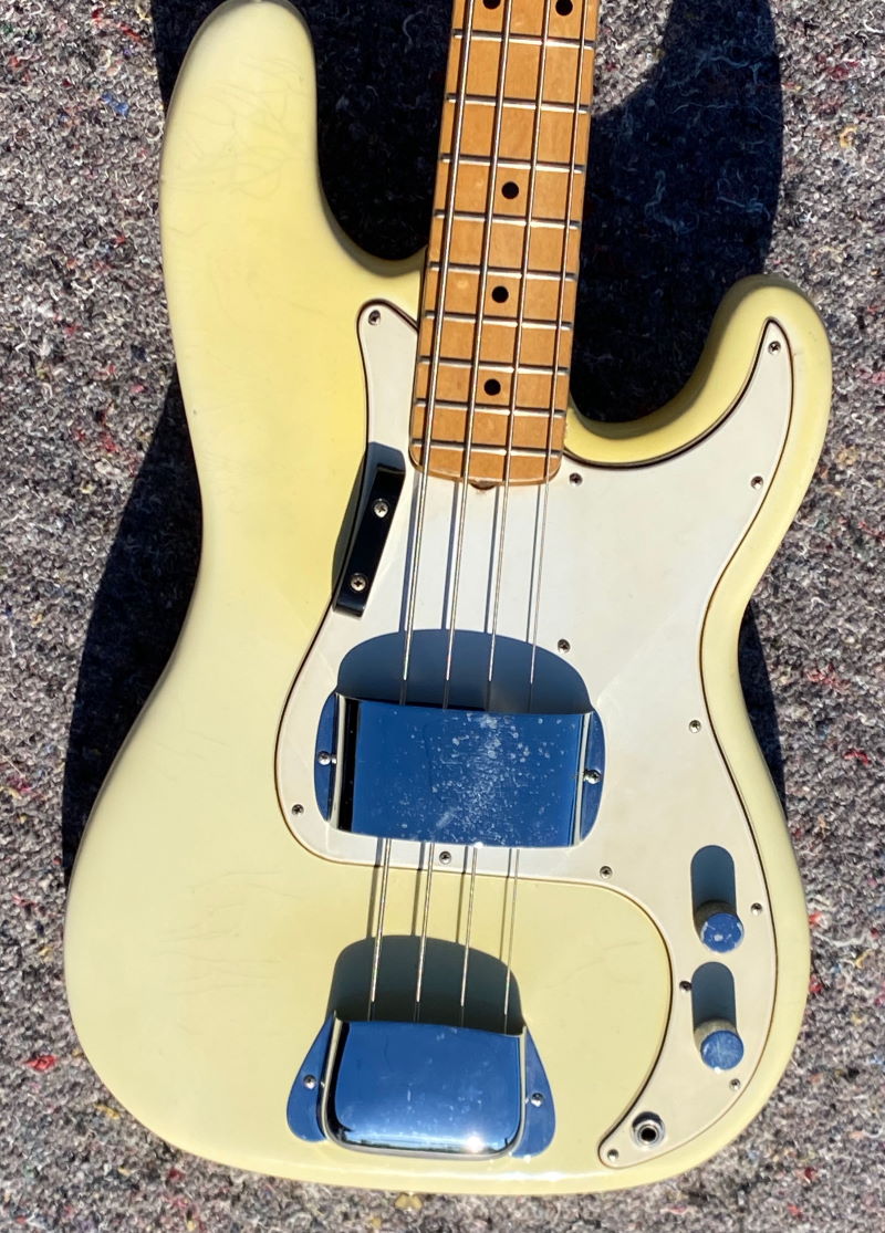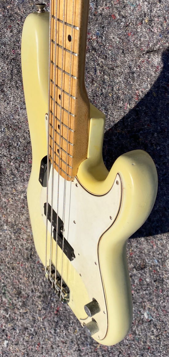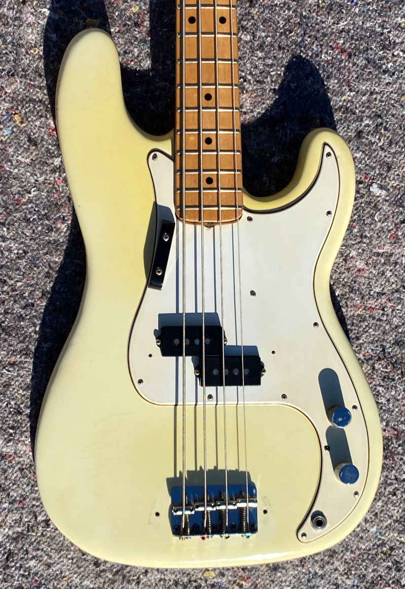 1974 Fender Precision Bass Olympic White Maple Neck in Excellent Conditions All Original, Pickup and pots dating 73 A stunning straight neck, fast fingerboard with low action and with very good frets ready to play no buzz. Original P-bass pickups are warm and fat and percussive with that distinctive P-bass tone !!! Comes with vintage original "Poverini" Made in Italy For Fender black tolex case Code Ba02