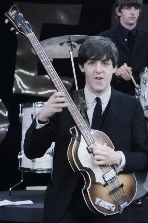 Paul McCartney in 1964 with his second Hofner bass.