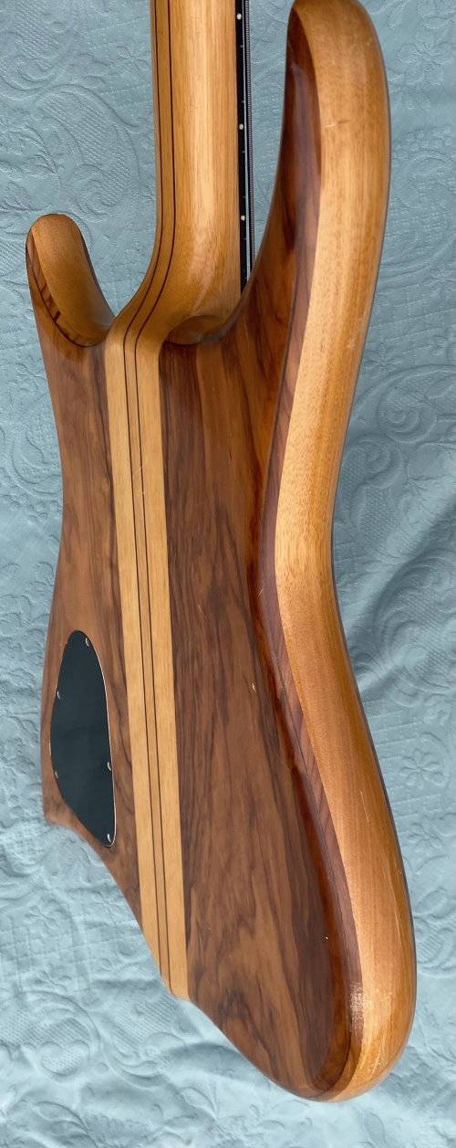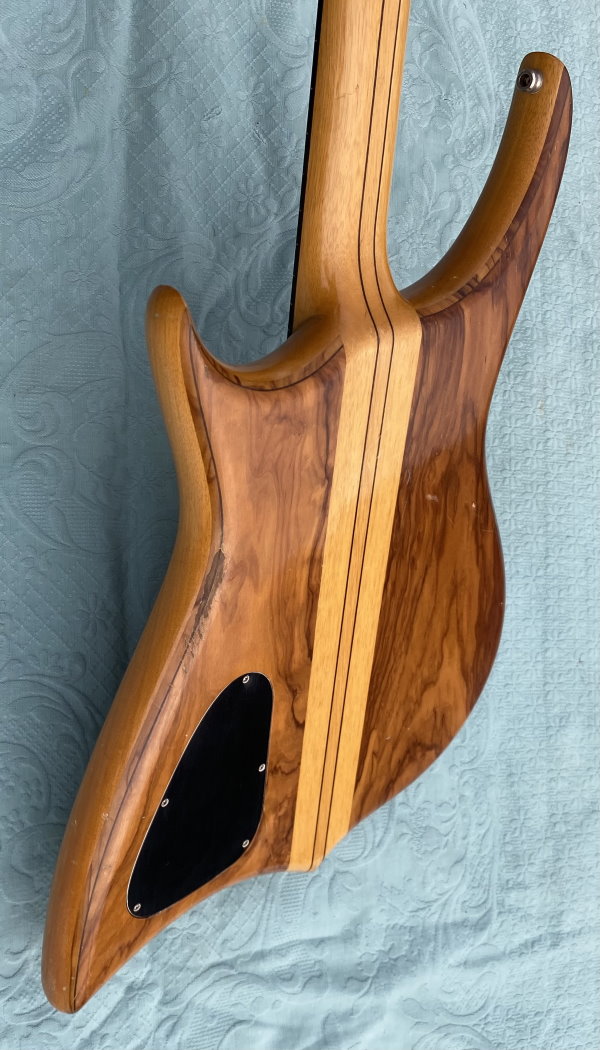1982 RONTON BASS Fretless Mod. "Camillo" made from Pino Rotondo, aka "Ronton". It was exhibited at the Music Messe in Frankfurt and belonged to bassist Julus Farmer. Scale: 86,4Cm (34") - Neck Length: 63Cm - Radius: 10" - Nut Width: 45mm - Knob: Brass - Passive Electronics - Double truss rod - OHC Weight: 5,4 Kg (code BA76)