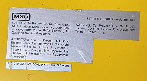 1979 MXR STEREO CHORUS 70's Yellow Large Metal Box 220Volts Excellent and working conditions. Code EF85