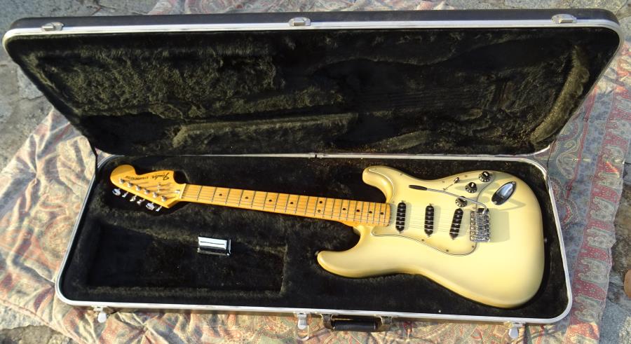 Fender stratocaster 1979 Antiqua Usa made.100% original. Very sought after in this condition and very collectable. Original and excellent frets conditions working truss rod. Maple neck. Large headstock. 3 Bolt Neck. Great player. Amazing sound. Pretty clean. Neck Profile: Thick C Neck Thickness (IN): 1st fret: .88, 12th fret: .96" Fingerboard Radius: 7.25 Nut Width: 1-5/8 in Has a lovely arrow straight neck and really low, fast action. Comes with original hardshell case and case candy.