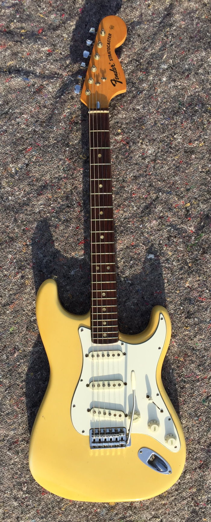 1973 STRATOCASTER, Olympic White, CUSTOM COLOR stag pole piece, white pickguard, Rosewood fingerboard,100% Original, EX+ code FE312