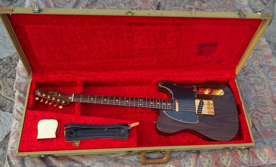 In 1990 together with Jacques Mazzoleni and Andre Duchossoir we were guests for several days at the Custom Shop directed by J.Page. Andre was in the attics to collect material for his book "The Telecaster" one of the two guitars that I had the honor and availability to access is this Rosewood Telecaster faithful reproduction of that George Harrison which to make it precious and unique among the few that were being realized, was completed in Gold Parts.