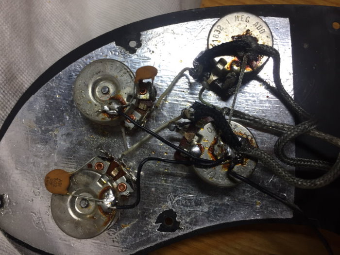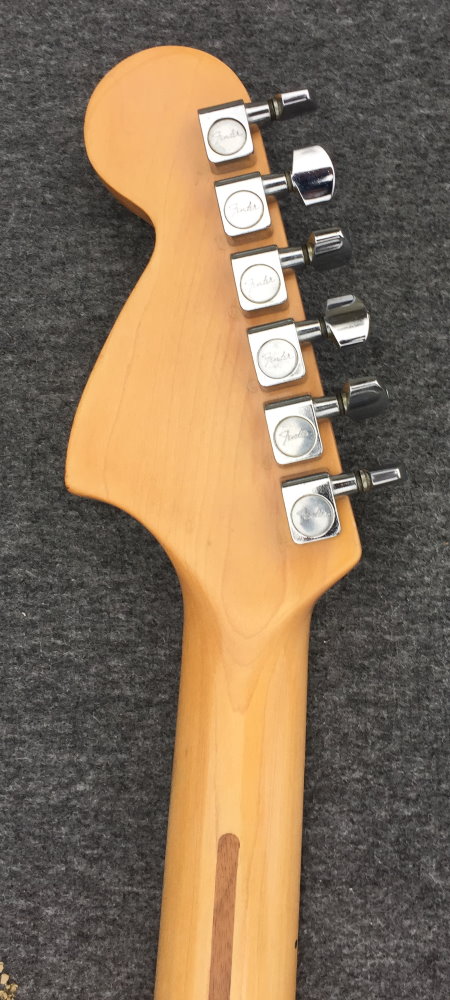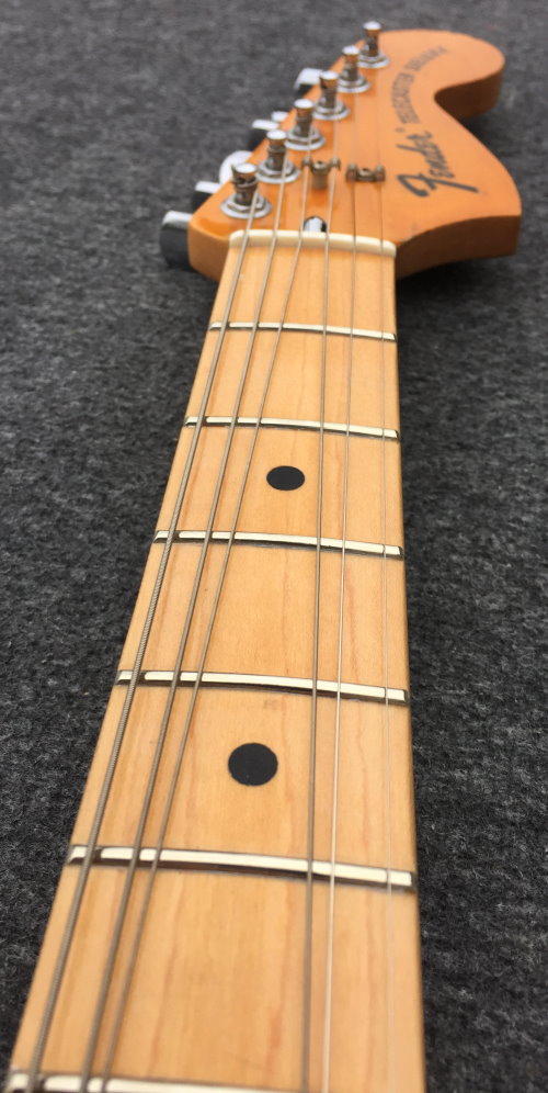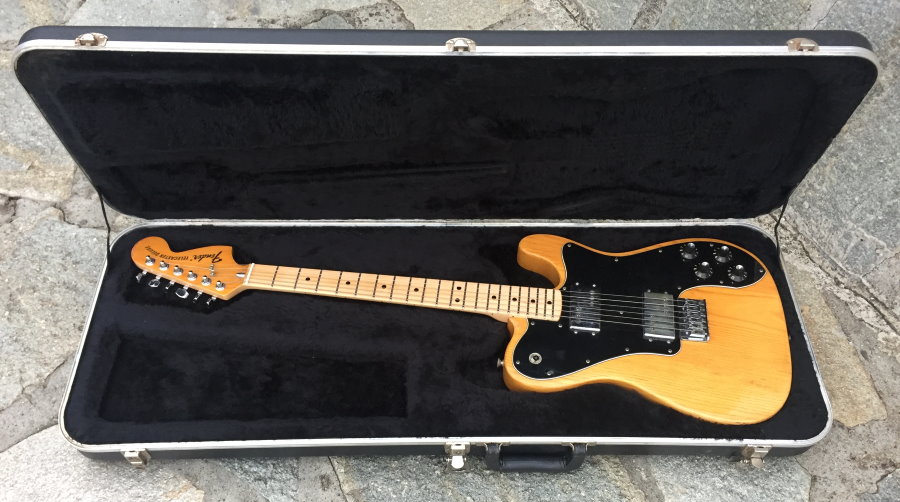This mid 70’s Deluxe features a pair of wide range humbuckers for a tone much fatter than your average Tele. The walnut finish and maple neck provide a nice visual contrast and the medium elliptical neck profile plays really well. Maple neck, 25.5″ scale length, 1 5/8″ nut width, medium elliptical neck profile, professional refret with original Fender frets ready to play. Ash body, with body contour on back. Come in Molded Fender Case as you see in photo.
