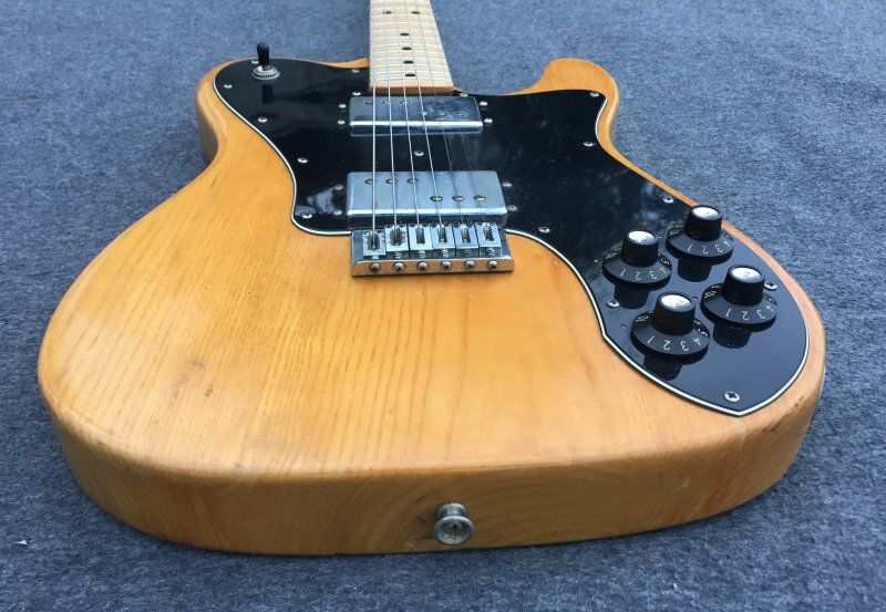 '75 TELECASTER DELUXE, Natural. Maple fingerboard, All original. EXC Cond. code FE51
