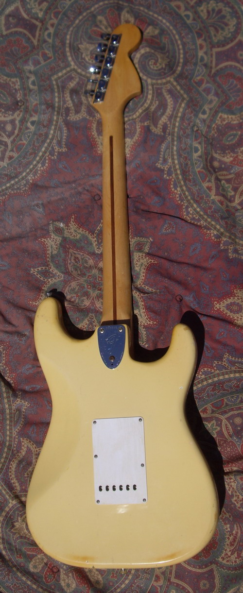 A RARE left handed 1973 Creme Fender Stratocaster. The guitar is all original.The original custom color white finish has a nice patina, the 3 pickups sounds amazing.Staggered Pole Pickups with 1973 ink date stamps, 3 way switch.