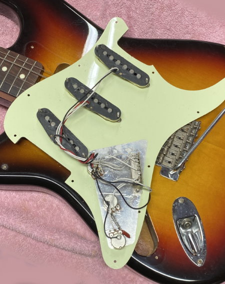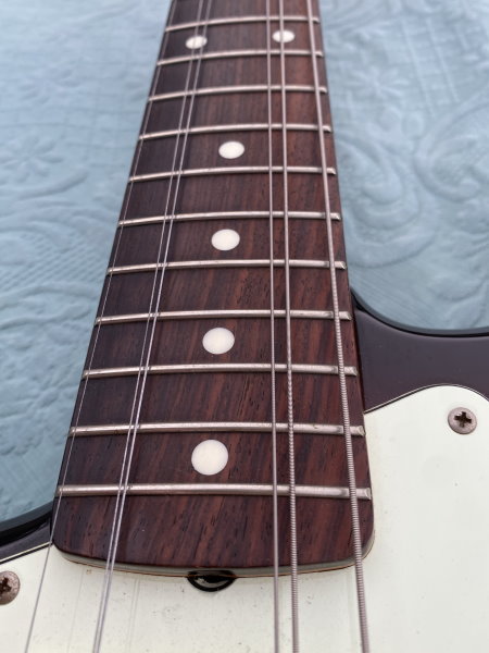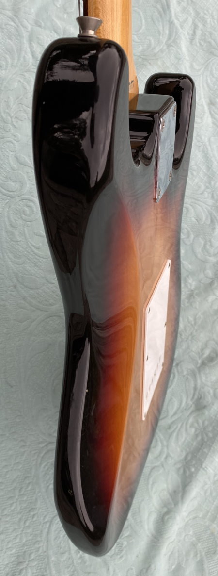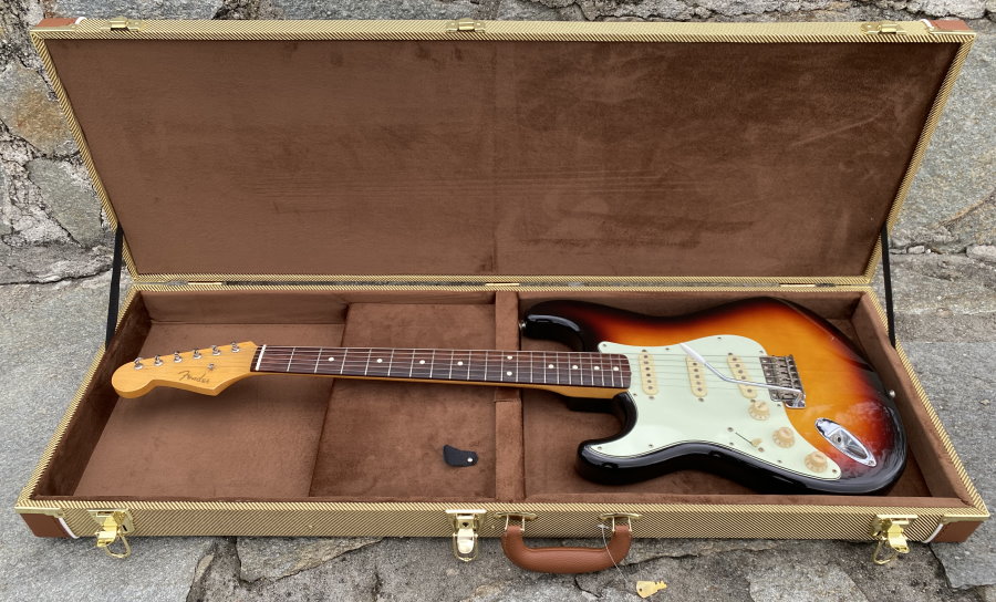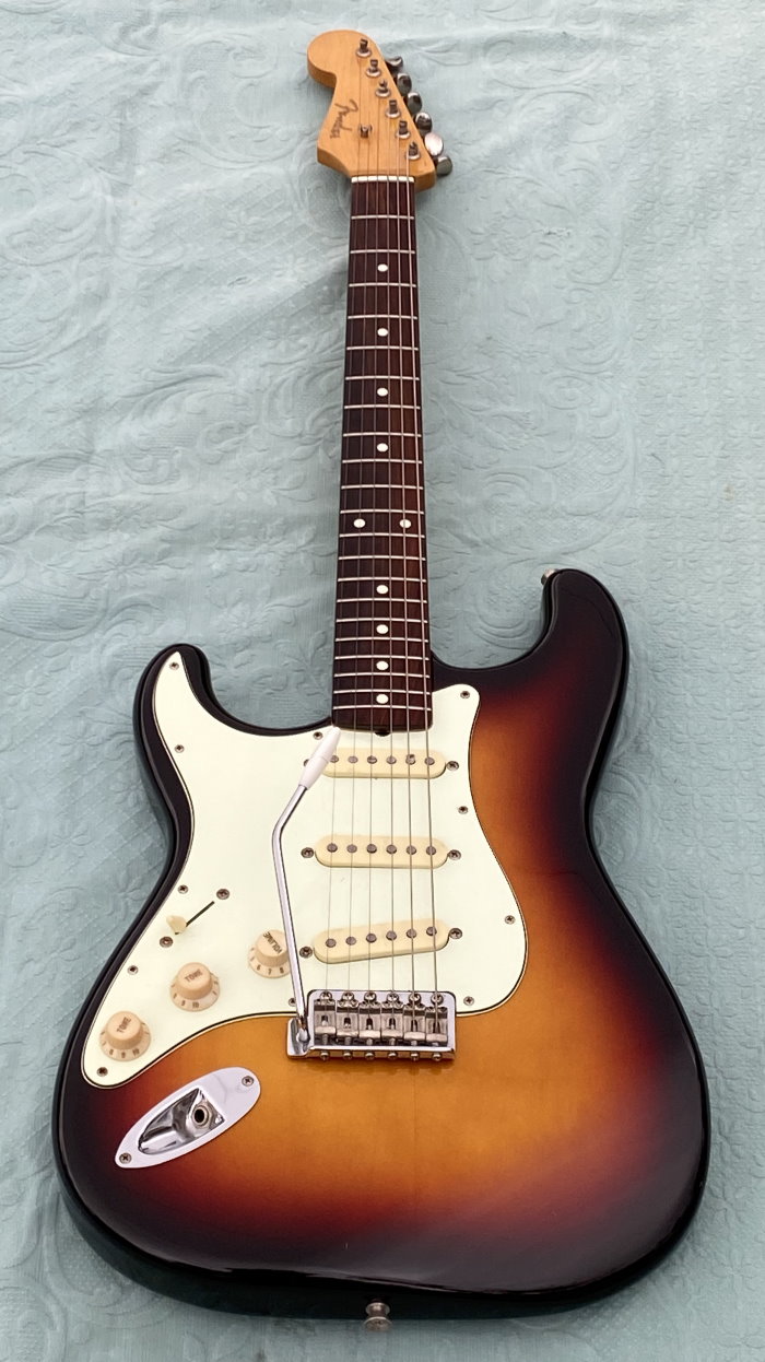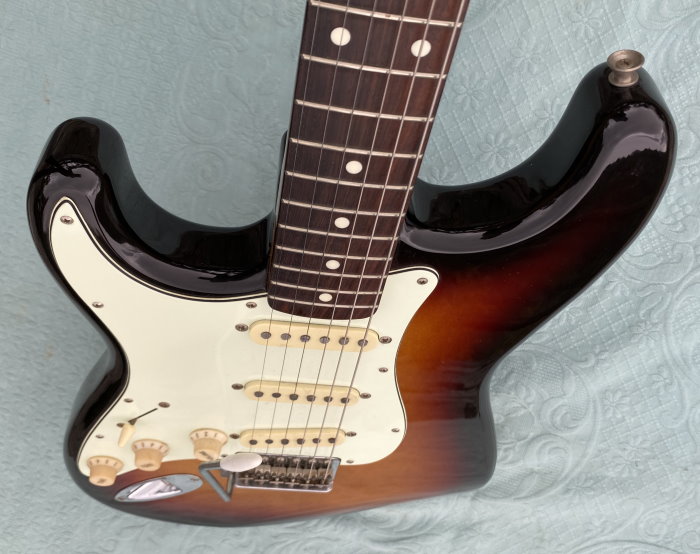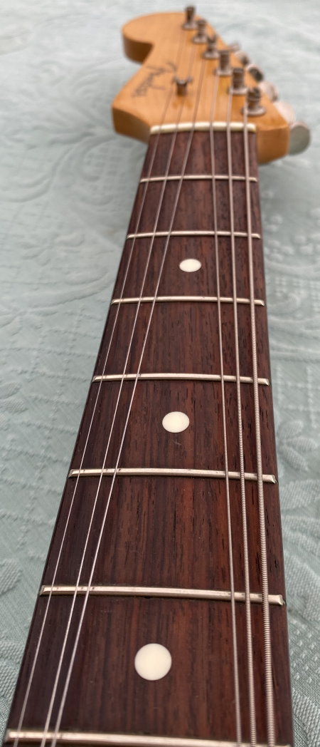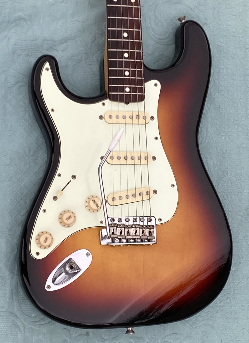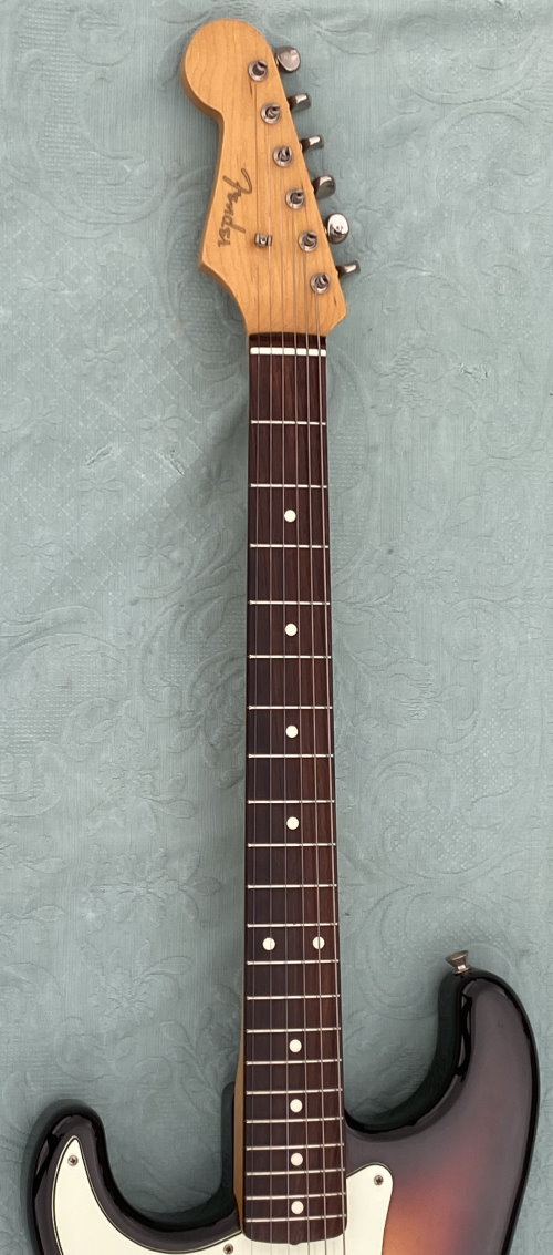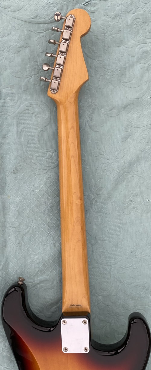 Very nice 60's flavored rare Lefty Strat from Japan built at the Fender FujiGen factory in 1996 (CIJ era). Overall it has a great vibe and plugged in it sounds like a very good Strat should. Is in near mint conditions so straight neck, perfect frets, all OK ready to play. Basswood body, rosewood fingerboard with dot inlays, 21 frets, 1 11/16” nut width, 25.5” scale length, vintage Kluson style tuning keys, vintage style truss rod at the butt end of the neck.