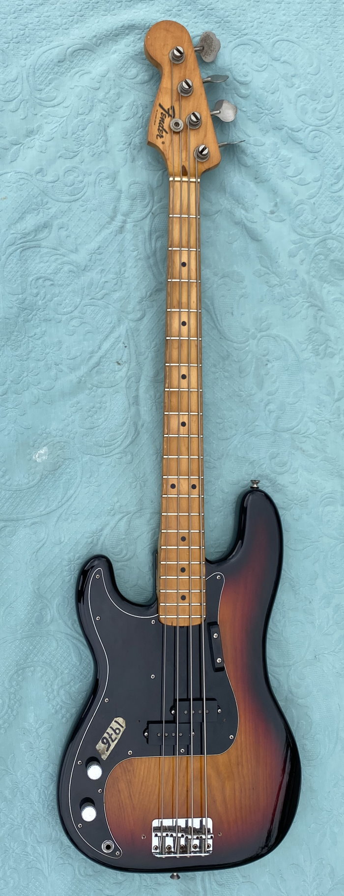 1976 FENDER PRECISION BASS Lefty, Sunburst, Maple Neck, Super Sound EX code LH60