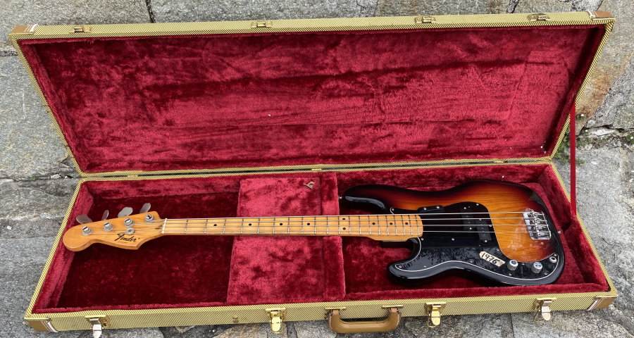 Nice Left Hand Precision with very powerful original pickups, original pots dating 75' and 76', original bridge, original tuners, straight neck with original frets in very good conditions ready to play. Comes in Tweed non Original case. Weight 4,8Kg