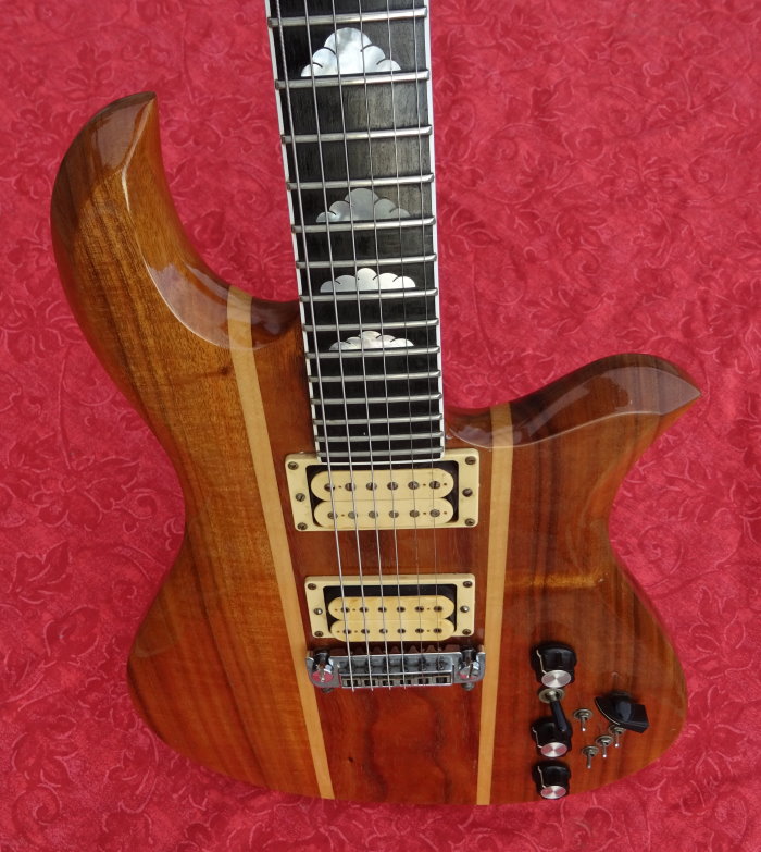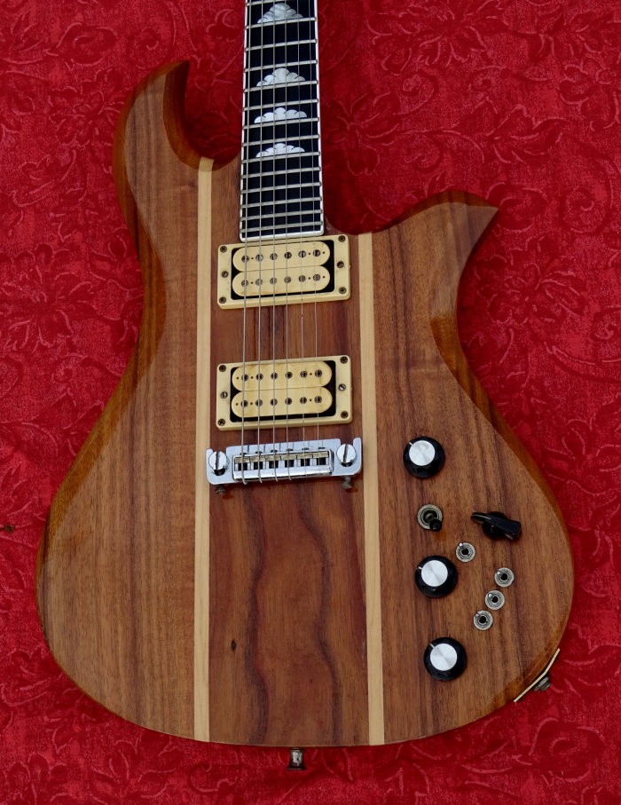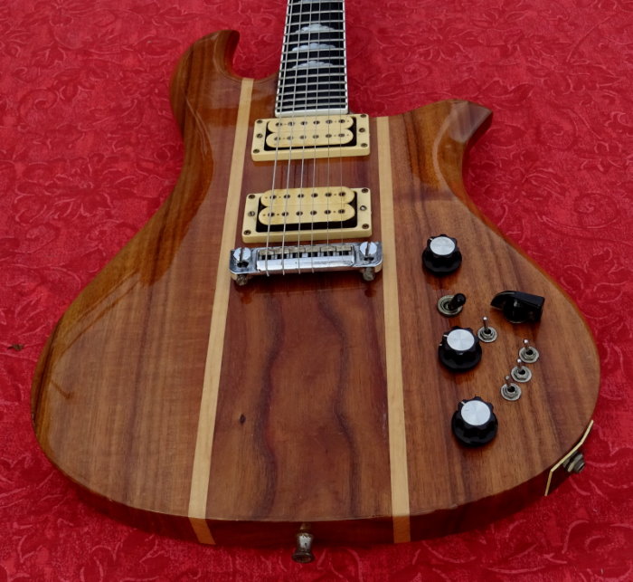 All the electronics are correctly working and intact. A rare Ebony fingerboard & mother of pearl diamond inlays. Rosewood headstock overlay with mother of pearl "R" logo. Neck is straight & truss rod is in good working condition. 1 5/8" nut width; 24 3/4" scale length Grover Imperial tuners in perfect working condition. Low action straight neck, excellent frets come with Orig. Hard Case. Overall the guitar has a great look & feel to it & is an amazing player. A nice example of an original USA made BC Rich. The Eagle had the neck-through-body construction and was made entirely of Koah. The Eagle included an onboard preamp with a separate volume control and all the bells and whistles that were to be found on the Seagull. The body was more Strat-like with a double cutaway.