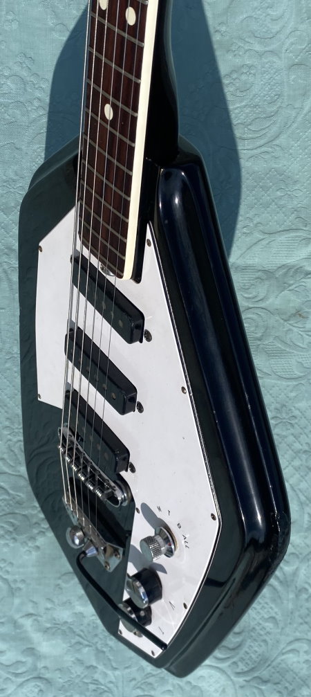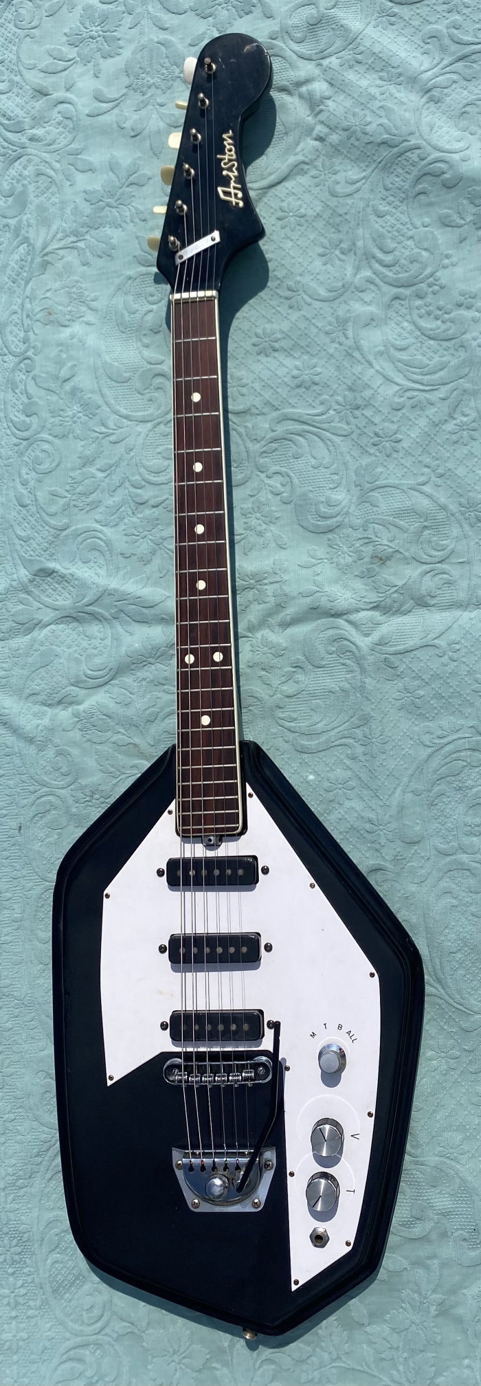 60's ARISTON REX Emanuela Beccacece Black 3 Picups,Vibrola, comes in Gig Bag shipped with very good packaging. Code VA154