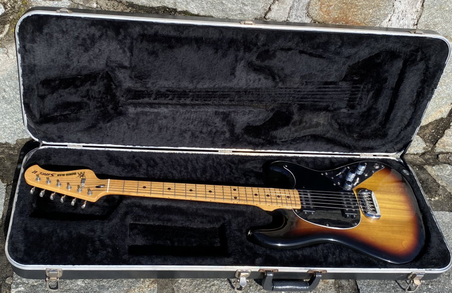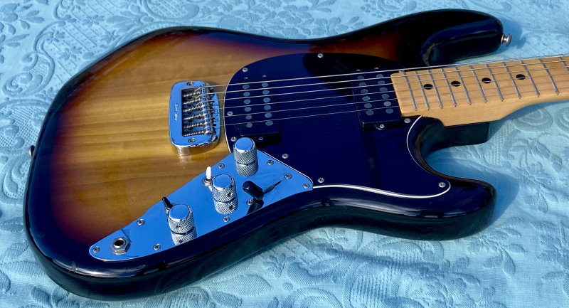precursor to the G&L F-100. Active splittable humbuckers with independent treble