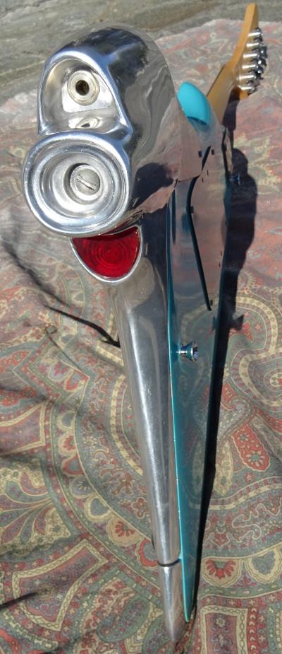 80'S AMERICAN SHOWSTER GUITAR SHEVY AS-57 CLASSIC, Turquoise, like the tailfin of a ´57 Chevy, operational chromed tailfin brake-light assembly, All original 100% in near mint conditions RARE FIRST EDITIONS